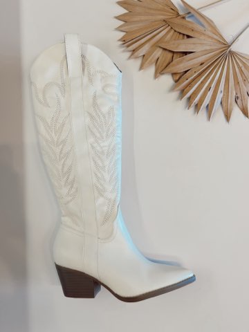 Our white knee-high cowgirl boot is perfect for all the country concerts, or even a night out!