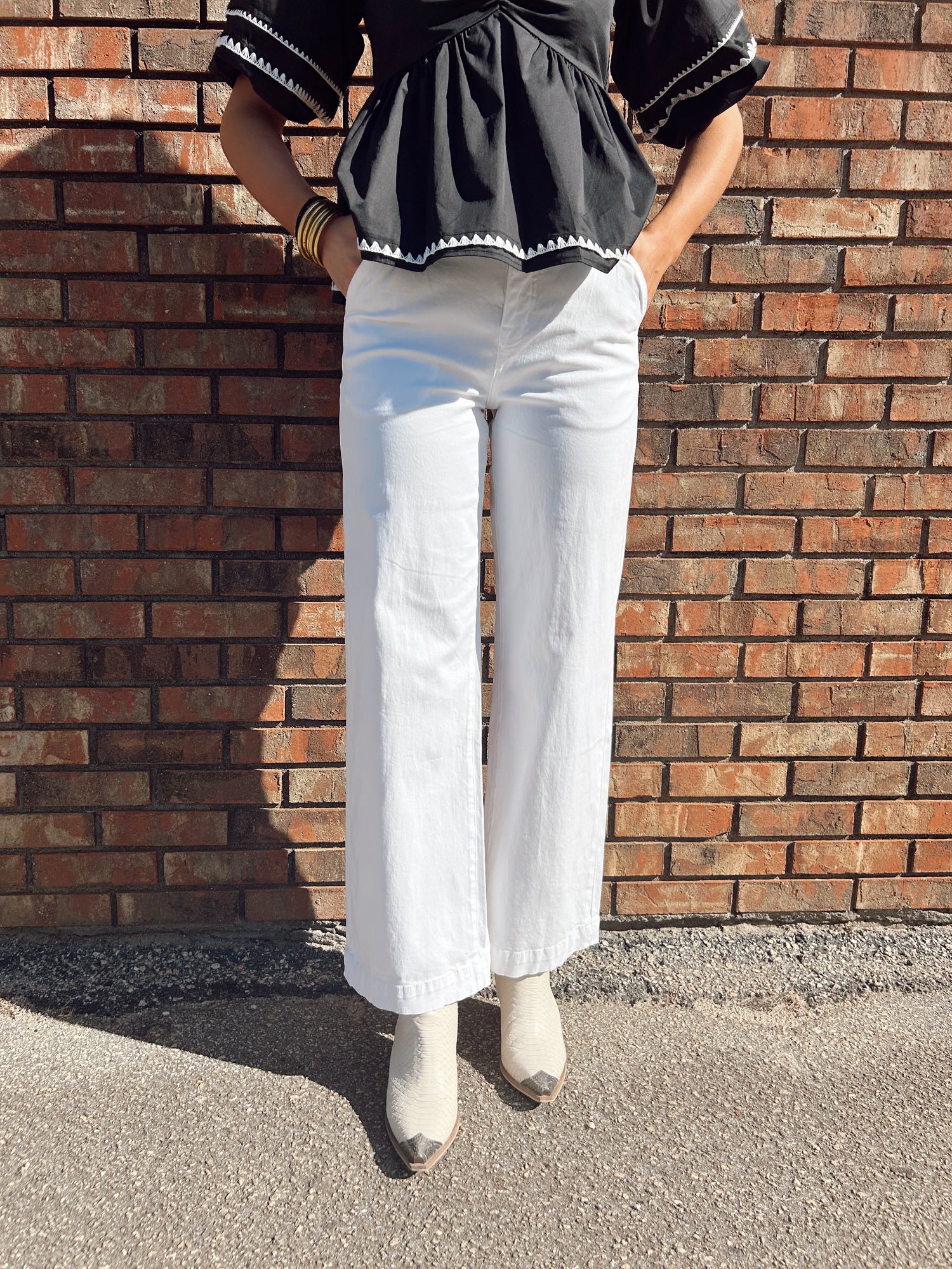 high rise white denim jeans